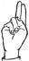 На ћирилици написано ЈОВАН ГРУЈЕСКОВИЋ састоји се из 16 слова [?]. Исписано ћириличном једноручном азбуком за глувонеме: